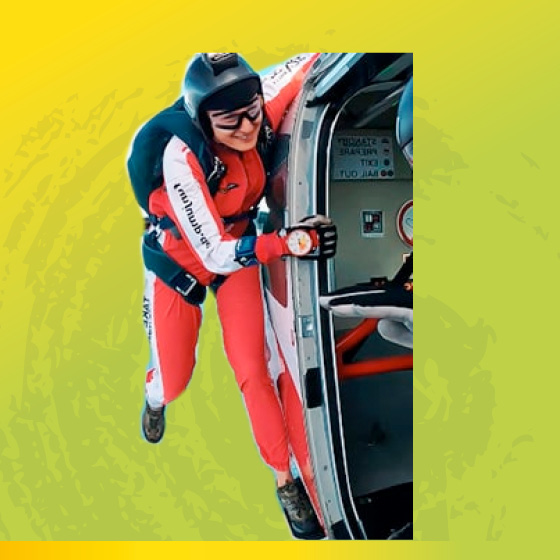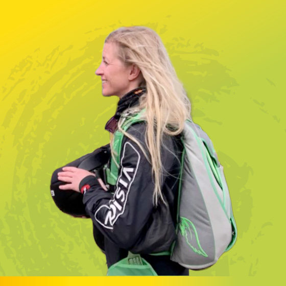 Sprung- & AFF Lehrerin Sabrina -Spritzname „Bina“- ist Sprunglehrerin und AFF-Instructorin. Sie leitet sehr oft die Wochenend-Grundausbildungen und bringt ihren Schülern mit großer Freude das Fallschirmspringen bei. Über 1.000 Sprünge, AFF-Instructorin, Schüler-Coachess.