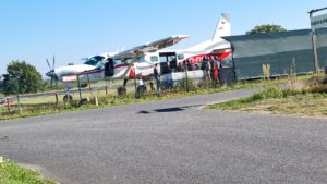 Dann kann es auch schon losgehen. Gemeinsam mit anderen Tandemspringern gehst Du zum Flugzeug. Nach dem Einstieg wirst Du an Deinem Tandempiloten „befestigt“. Das Flugzeug braucht rund 15 bzw. 20 Minuten bis zur Sprunghöhe von 2.500 bzw. 4.000 Metern. Gleich wird es richtig aufregend.